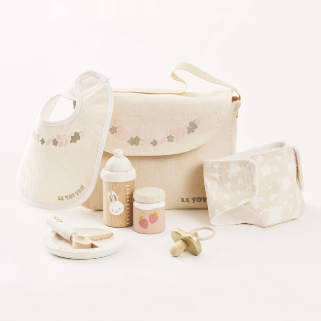 Prendersi cura di bambole e pupazzi non è mai stato così divertente e ispirante. Il set da infermiera Le Toy Van offre un equipaggiamento completo per i piccoli infermieri. Include una borsa fasciatoio in tessuto con motivo decorativo, ciuccio, bavaglino, pannolino, piatto, cucchiaio, pappa e biberon. Ogni pezzo è realizzato con attenzione alla sostenibilità e qualità per durare molte ore di gioco.