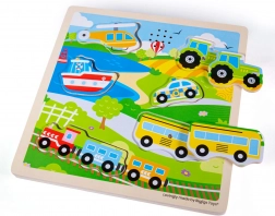 Il puzzle include diversi mezzi di trasporto, permettendo ai bambini di conoscere meglio il mondo che li circonda.