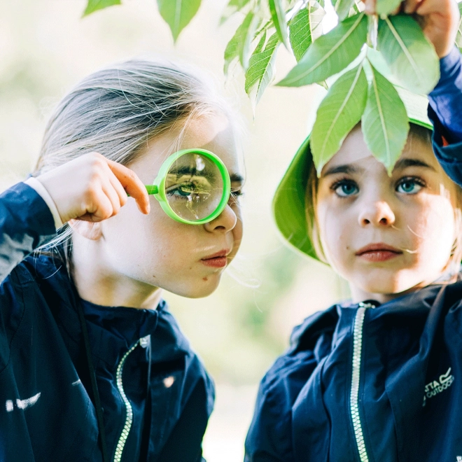 La lente e il contenitore trasparente con coperchio permettono ai bambini di esplorare i dettagli da molto vicino nel pieno rispetto della natura.