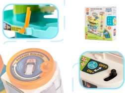 Scopri il garage parcheggio multifunzione che trasforma la cameretta in una città vivace. Quattro ampi piani offrono tanto spazio per parcheggiare, l’ascensore porta le macchinine fino in cima e non manca l’eliporto per l’elicottero preferito. La modalità elettrica dell’ascensore è accompagnata da luci e melodie allegre; in caso di bisogno l’ascensore può essere azionato manualmente.