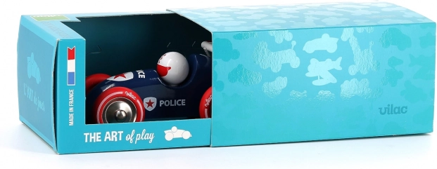 Vilac auto da corsa della polizia a traino è un giocattolo originale che affascina i bambini con il suo design unico e la lavorazione di alta qualità. Grazie alla corda inclusa, può essere un compagno costante nei loro viaggi per la stanza o la casa.