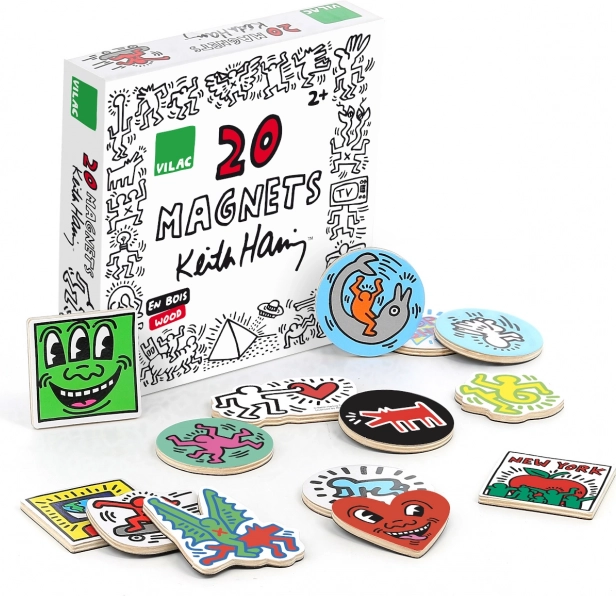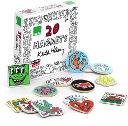 Un set originale di magneti in legno con le iconiche illustrazioni di KEITH HARING illuminerà il tuo frigorifero, la lavagna o la cameretta. I magneti in compensato resistente hanno una stampa lucida di alta qualità e aderiscono saldamente alle superfici metalliche. Un regalo perfetto in una attraente scatola regalo, adatto dai 2 anni.