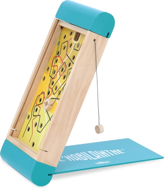 Scopri il divertimento e l’allenamento delle abilità con il Vilac labirinto 2 in 1. Da un lato guidi la biglia con gli aste lungo uno dei tre percorsi colorati di diversa difficoltà, dall’altro controlli la direzione inclinando il labirinto. Il design compatto con coperchio pratico e la qualità della lavorazione in legno rafforzano pazienza, coordinazione occhio–mano e percezione spaziale.