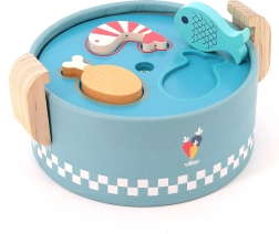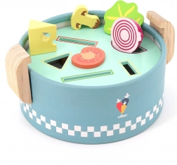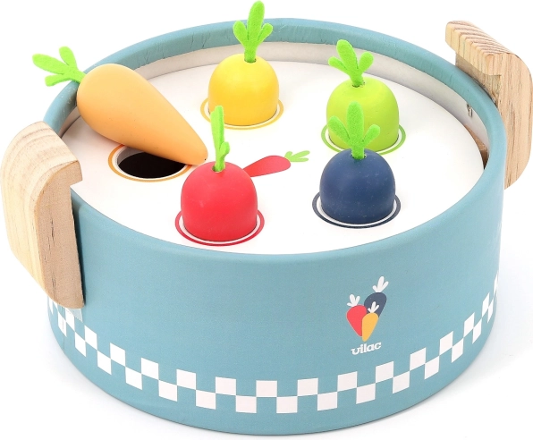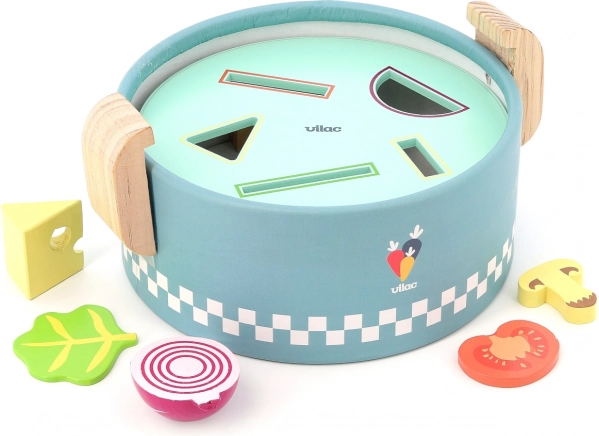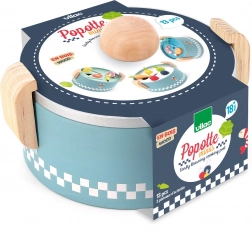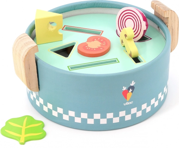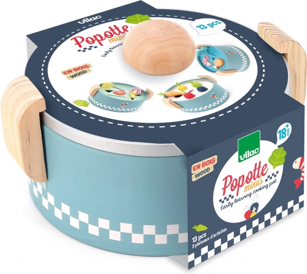 Il mini pentolino a incastri VILAC è un intelligente giocattolo in legno per i più piccoli dai 18 mesi. Sotto il coperchio si trovano tre tavole intercambiabili con forme diverse, nelle quali i bambini inseriscono o lasciano cadere i colorati pezzi di cibo. Nasce così una sorta di “cucinare” come nella realtà, che sviluppa fantasia e abilità pratiche.