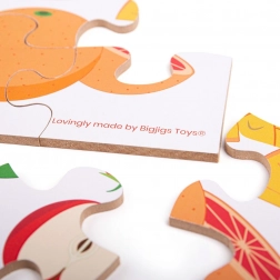 Attraverso la composizione del puzzle, i bambini apprendono a riconoscere la frutta e sviluppano il loro pensiero logico e la motricità fine.