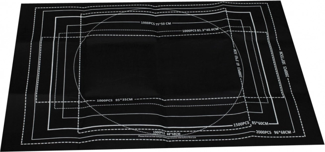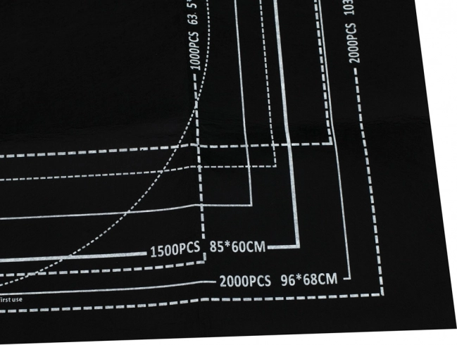 Le linee bianche sul tappetino indicano con precisione le misure per 500–2000 pezzi, così potrai pianificare facilmente la composizione.