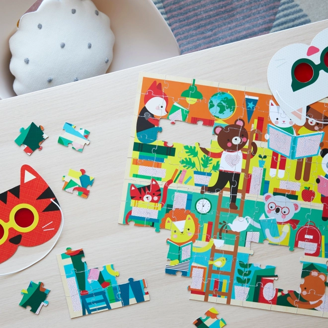 Assembla il puzzle da 100 pezzi e vivi la magia del gioco interattivo grazie agli occhiali 3D, che rivelano dettagli nascosti. Teneri animaletti affrontano il disordine della biblioteca e sta a te aiutarli a trovare gli oggetti smarriti.