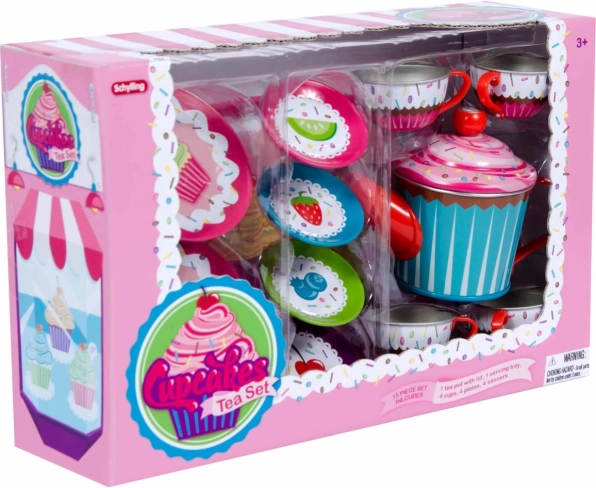 L'intero set è progettato con colori vivaci e motivi di muffin decorati, rendendolo la scelta perfetta per i tè immaginari.
