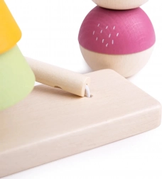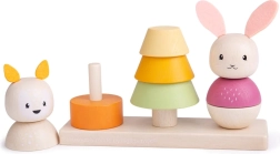 Impilare la volpe, il coniglietto e l'albero allena la presa, la precisione dei movimenti e la coordinazione mano–occhio. I bambini esercitano naturalmente la classificazione di forme, colori e dimensioni.
