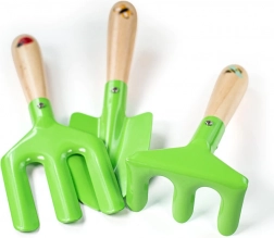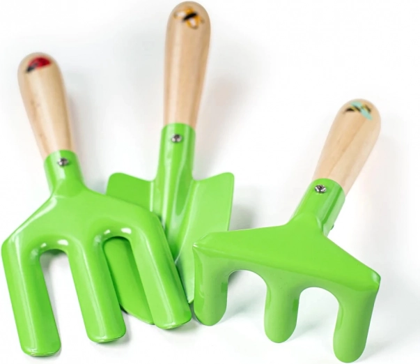 Ogni pezzo è pensato per le piccole mani: i manici in legno levigato offrono una presa piacevole, le parti in metallo sono resistenti e i guanti in tessuto proteggono durante il lavoro. Il set è perfetto per il giardino e la sabbiera e, grazie alla confezione compatta, tutto è sempre a portata di mano.