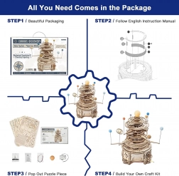 Scopri il fascino dello spazio con questo preciso modello 3D dell’orologio del sistema solare. Assembla un orrery in legno funzionante con azionamento manuale, dove i pianeti orbitano a velocità diverse e il Sole a LED brilla. Il modello in compensato tagliato al laser offre un meccanismo interattivo, un esperienza educativa e una decorazione di stile in uno.