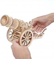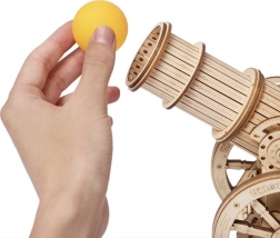 Il modello offre un meccanismo di tiro a caricamento manuale con grilletto e la possibilità di scegliere l’angolo di lancio. La canna è predisposta per sparare comuni palline da ping pong, così dopo il montaggio potrai goderti non solo un bel modello, ma anche un divertimento dinamico. Grazie alle grandi ruote il cannone si sposta facilmente e puoi adattare il “campo di battaglia” secondo le necessità.