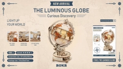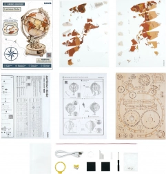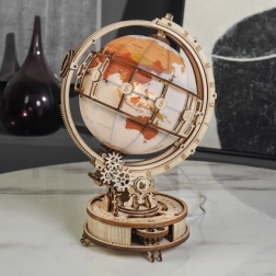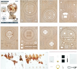 Questo kit 3D combina meccanica ingegnosa e design estetico. Il globo in legno con ingranaggi a vista ruota con facilità; l’illuminazione dal tono caldo crea un’atmosfera accogliente e, grazie alla lente meccanica, potrai leggere comodamente anche i toponimi più minuti. Il look retrò, ricco di ornamenti, è completato da scale di latitudine/longitudine e indicazioni dei fusi orari.