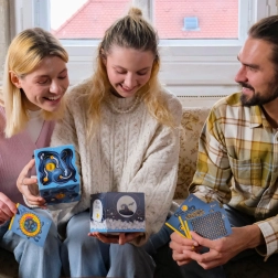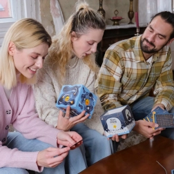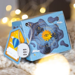 Trasforma la consegna del regalo in un’esperienza indimenticabile. La scatola misteriosa ESCAPEWELT è un’elegante puzzle 3D che, una volta assemblata, blocchi con un codice a tre cifre e prepari al destinatario una serie di indizi logici su quattro carte. Grazie agli adesivi colorati, ai simboli e agli indizi direzionali imposti tu stesso difficoltà e atmosfera dell’enigma.