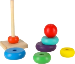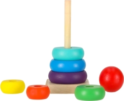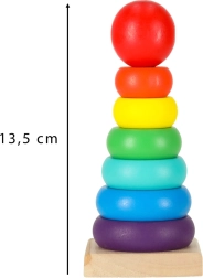 I giocattoli in legno, noti per il loro design semplice, rafforzano la creatività e lo sviluppo intellettuale dei bambini. La torre impilabile colorata offre non solo divertimento, ma supporta anche lo sviluppo del pensiero logico e creativo. Impilare gli anelli migliora la motricità e aiuta ad apprendere i colori.