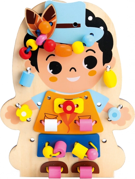 Scoprite un creativo gioco di infilatura in legno che intrattiene i bambini per ore sviluppando al contempo le loro abilità. La tavoletta stampata su entrambi i lati con personaggio e il ricco set di accessori favoriscono la motricità fine, la coordinazione mano–occhio e la creatività. Grazie ai 60 pezzi, i bambini allenano la pazienza, il pensiero logico e imparano il problem solving giocando.