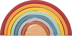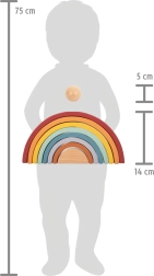 Questo arcobaleno di legno offre un'ottima opportunità per i bambini di sviluppare la loro immaginazione e le abilità motorie. Include 8 archi colorati e una pallina di legno che può servire come strumento didattico per comprendere le dimensioni e i colori. Il giocattolo è realizzato in accordo con la pedagogia Montessori ed è ideale per il gioco libero.