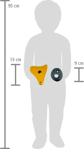 Gli appigli sono adatti per bambini, la superficie facilita la presa e supporta lo sviluppo di forza, equilibrio e resistenza. Possono essere combinati con altri prodotti della linea Adventure per creare una palestra ginnica personalizzata.