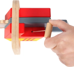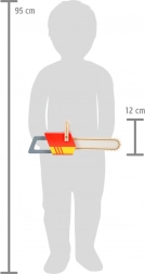 Questa motosega giocattolo in legno di alta qualità combina costruzione resistente e design sicuro per il gioco quotidiano. Gli elementi rosso e giallo accesi con la forma realistica della motosega stimolano la fantasia e sviluppano il gioco di ruolo e la motricità fine.
