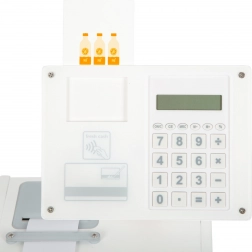La calcolatrice integrata nel monitor girevole, il rotolo di scontrini a strappo e lo slot per la carta permettono ai bambini di vivere un acquisto reale, dalla scansione dei prodotti alla stampa dello scontrino.