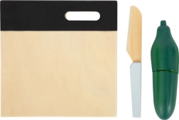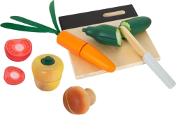 Include un coltello di legno, un tagliere e le verdure. La confezione riutilizzabile serve per riporre il gioco e insegna ai bambini il pensiero ecologico.