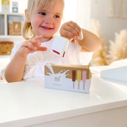 Small foot porta nel mondo dei bambini il divertimento con ghiaccioli in legno realistici, perfetti per bancarelle e cucine giocattolo. Questo set include tre ghiaccioli nei gusti più amati: fragola, vaniglia e cioccolato. I bambini potranno divertirsi a lungo giocando in modo interattivo e imparando.