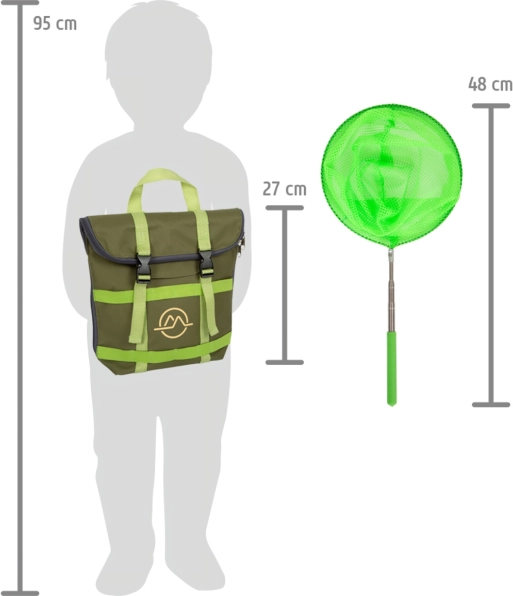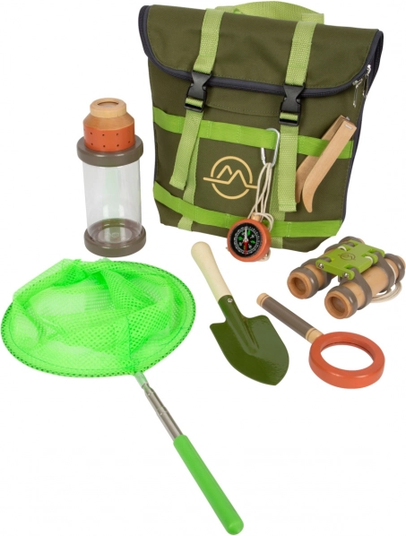 Include un set completo di strumenti per giovani esploratori. Dalla lente d'ingrandimento alla bussola, tutto il necessario è incluso nello zaino.