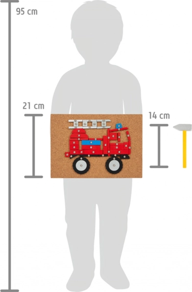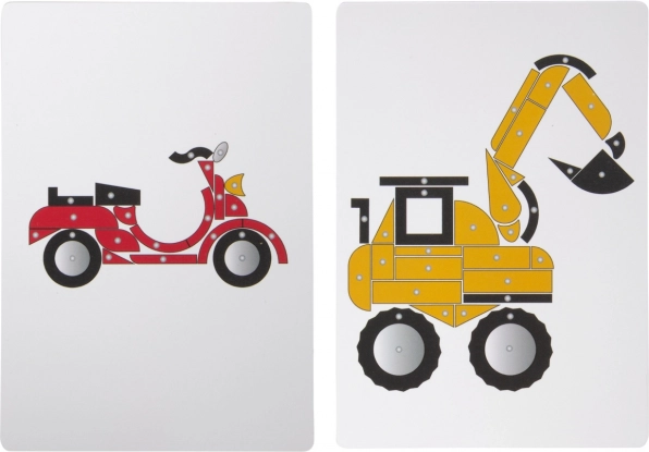 Con questo classico gioco di martelli dai colori moderni, i bambini possono creare immagini di veicoli e macchinari da costruzione seguendo sei modelli illustrati o secondo la loro fantasia. Caratteristiche principali: