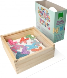 I magneti di legno con i caratteri dell'alfabeto sono un giocattolo ideale per i bambini per imparare le prime parole. Possono essere fissati al frigorifero o a una lavagna magnetica e incoraggiano il gioco creativo.
