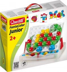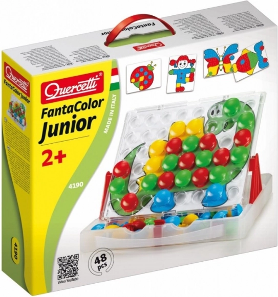 Scopri il creativo mosaico QUERCETTI FANTACOLOR JUNIOR, che stimola la fantasia dei bambini e la motricità fine. Grazie ai grandi pioli colorati è facile da maneggiare, la pratica valigetta mantiene tutto in ordine e 8 schede double-face offrono ispirazione per creare. Il gioco supporta il riconoscimento dei colori, la coordinazione occhio–mano, la concentrazione e la pazienza.