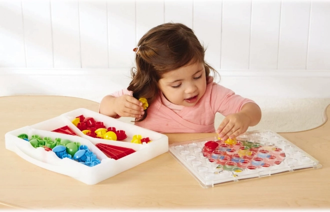 Questo gioco educativo è realizzato in plastica di qualità, atossica e resistente. Comporre il mosaico ha un effetto rilassante e allo stesso tempo sviluppa abilità importanti: motricità fine, percezione visiva, creatività e pensiero logico.