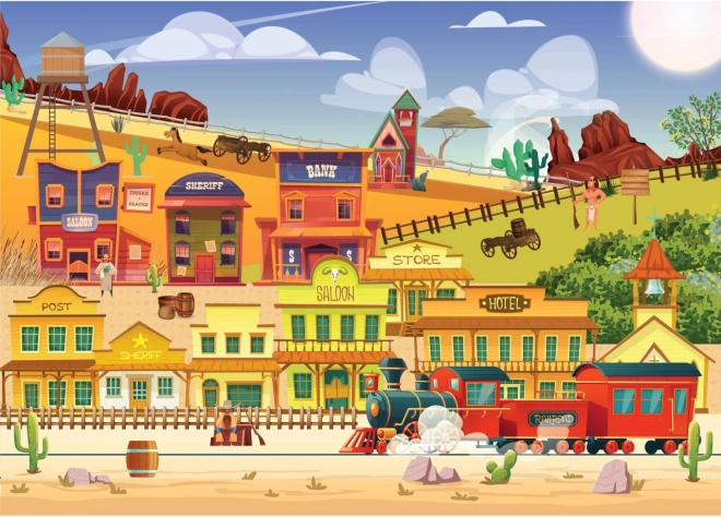 Scopri il puzzle premium con il tema della cittadina del Far West e del treno a vapore di BRAIN TREE. Goditi la finitura opaca per una visibilità perfetta dei dettagli, tessere tagliate con precisione in forme casuali e un ricco set di accessori tra cui poster, vassoi per la suddivisione, supporto per il coperchio e sacchetto richiudibile.
