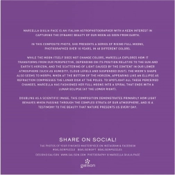 Il soggetto nasce dalle astrofotografie di Marcella Julie Pace, scattate in diverse località d'Italia nell'arco di dieci anni. Ogni immagine mostra come cambiano i colori della Luna piena – dal rosso e giallo all’orizzonte fino alle rare tonalità blu causate dalle particelle di polvere nell’atmosfera.