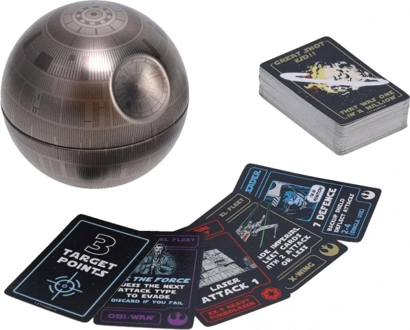 Lo stiloso astuccio in latta a forma di Morte Nera racchiude un agile gioco strategico in cui, nei panni dei Ribelli, attraversi i raid della flotta Imperiale e raccogli Punti Bersaglio. Il tuo compito è sopravvivere a una serie di attacchi, cronometrare le tue azioni e ottenere accesso al condotto di ventilazione – proprio come LUKE SKYWALKER – per sferrare il colpo decisivo.