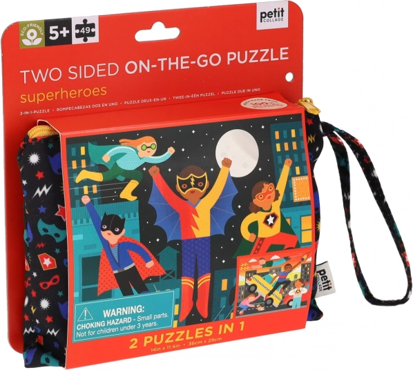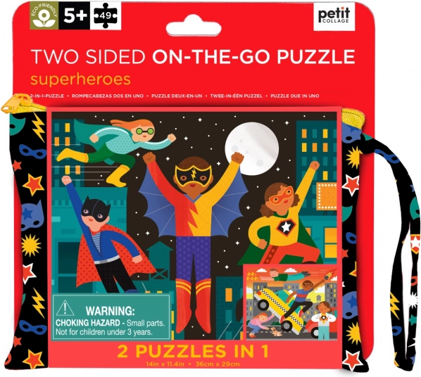 Scoprite la magia del mondo dei supereroi con il puzzle doppio lato del marchio Petit Collage. Ogni bambino può immergersi in un’avventura che stimola il riconoscimento di forme e colori.