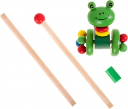 Adorabile rana di legno su ruote, che può essere guidata con una barra rimovibile, è un giocattolo ideale per i bambini che stanno imparando a camminare. Questo giocattolo non solo motiva le passeggiate, ma sviluppa anche la loro coordinazione e equilibrio.