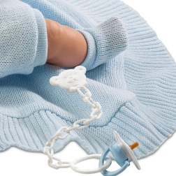 - Vestitini, copertina lavorata a maglia, ciuccio con clip