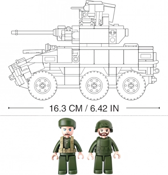 Il veicolo corazzato da combattimento 6x6 EBRC Jaguar di Sluban offre l’aspetto autentico di una moderna macchina da ricognizione e combattimento. La torretta girevole, i dettagli realistici e le minifigure snodate assicurano un’ottima esperienza di costruzione e di gioco. La plastica ABS di qualità, sicura e resistente garantisce lunga durata e solidità del modello.
