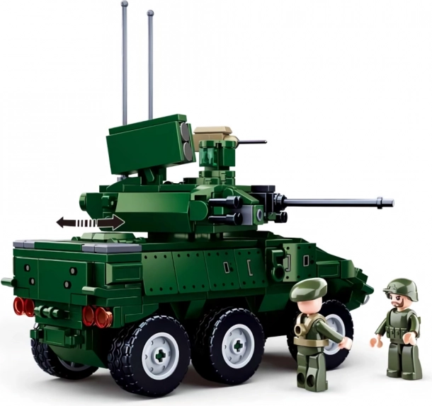 La riproduzione dettagliata del veicolo corazzato 6x6 con torretta girevole e elementi autentici garantisce un ottimo aspetto e giocabilità.