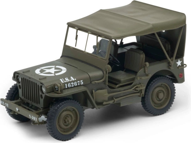 Scopri il modello dettagliato del Jeep Willys MB del 1941 in scala 1:18. Perfetto per collezionisti e appassionati, questo modello fedele è realizzato in metallo e plastica e offre una varietà di caratteristiche realistiche.