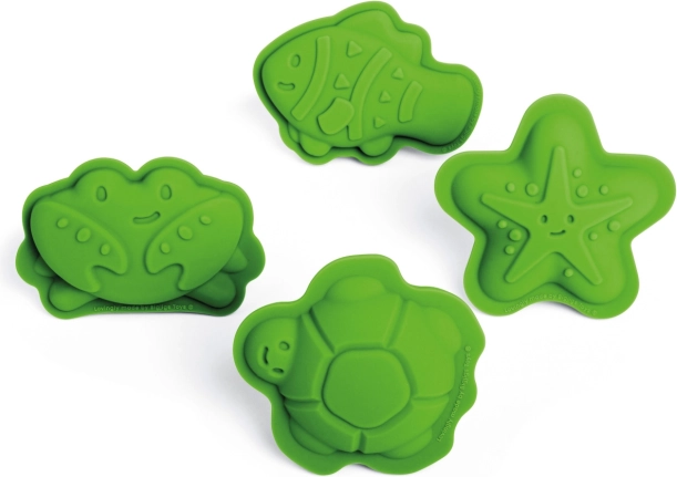 Scopri il set giocoso di quattro stampi 100% in silicone nella variante verde Meadow di BIGJIGS TOYS. I bambini creeranno fantastiche sculture di sabbia con motivi del mondo marino: stella marina, granchio, pesce e tartaruga. Gli stampi sono resistenti alle temperature e alle macchie, piacevolmente morbidi e sicuri per le mani dei più piccoli. Dopo il gioco, riponili facilmente nel sacchetto di cotone incluso.