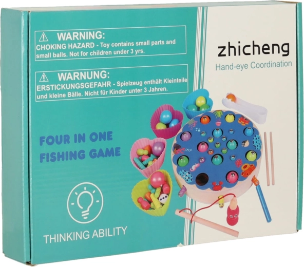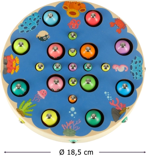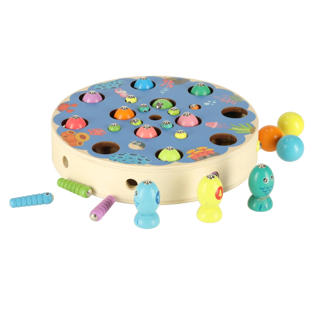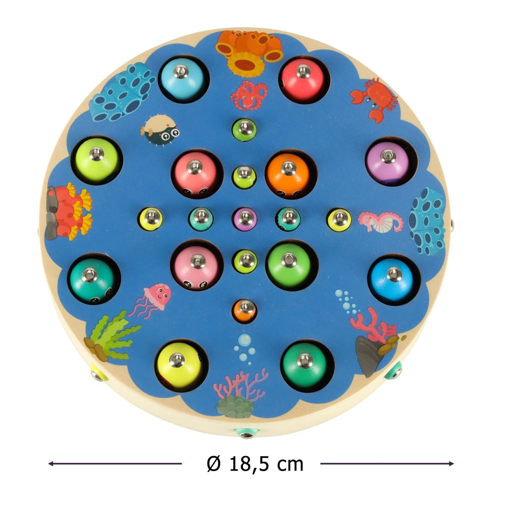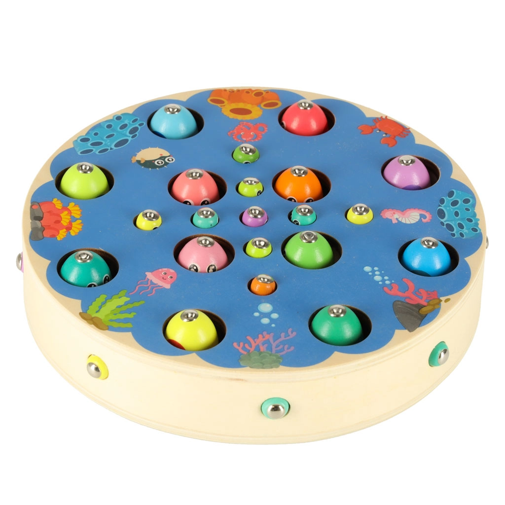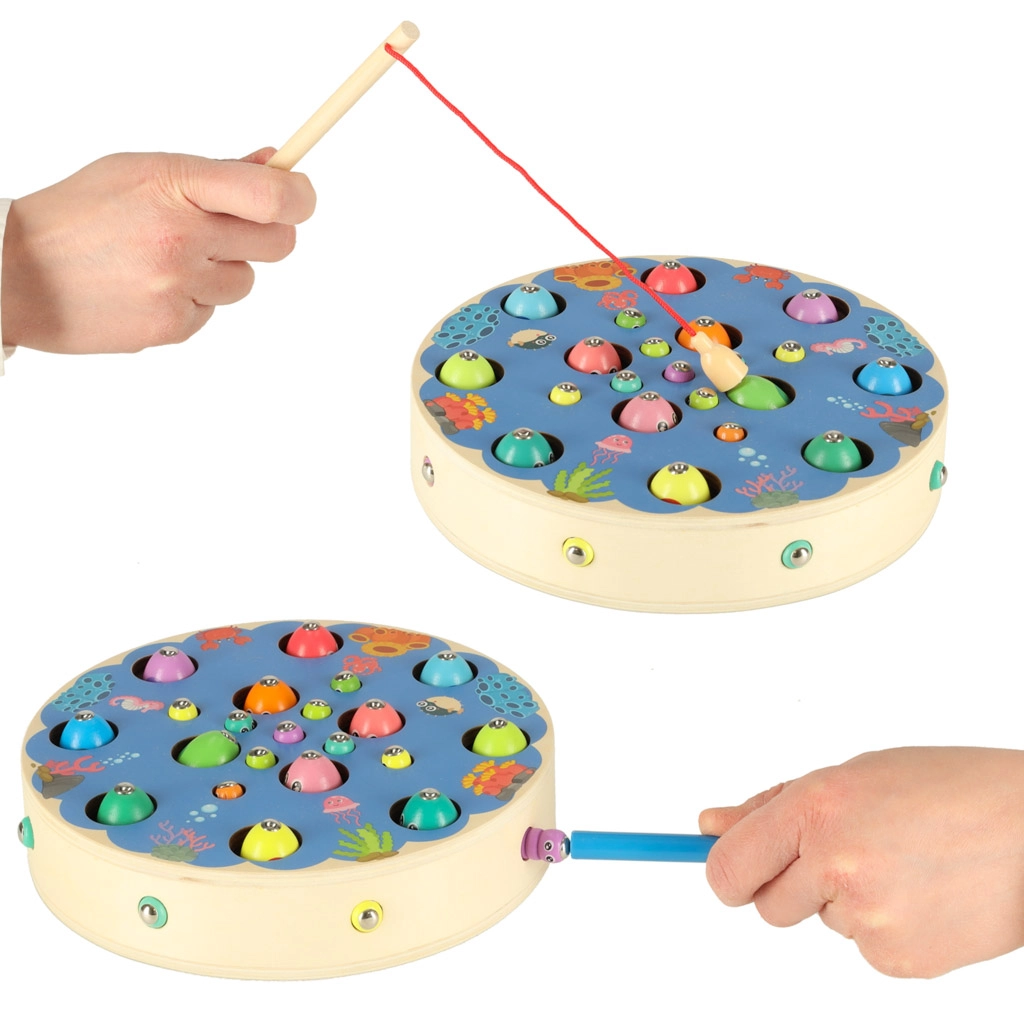 Il set Montessori multifunzionale offre ai bambini ore di gioco creativo e apprendimento. Sulla base rotonda in legno con motivo oceanico, i bambini pescano pesci magnetici con le canne, estraggono bruchetti, trasferiscono biglie con pinzetta o bacchette e allenano colori, classificazione e pazienza. Grazie agli accessori ricchi, possono giocare anche in più bambini.