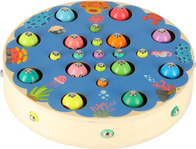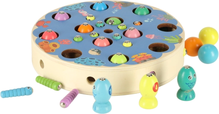 I bambini catturano pesciolini e bruchetti colorati con canne magnetiche: allenano precisione, pazienza e coordinazione occhio‑mano in modo divertente.
