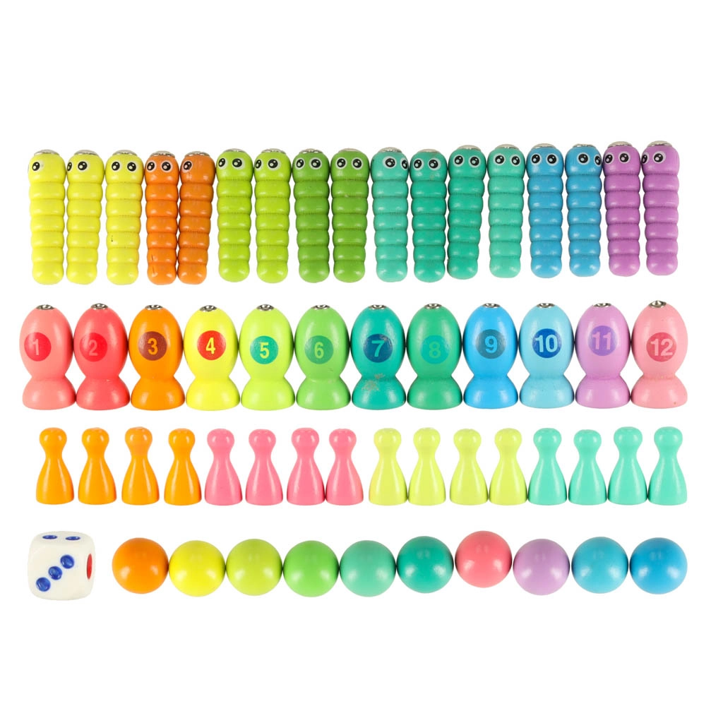 È incluso anche un semplice gioco da tavolo con pedine e dado per esercitare il conteggio e le prime regole del gioco. Tutti i pezzi hanno bordi lisci e sono realizzati in legno di qualità con colori resistenti, risultando piacevoli al tatto e sicuri per il gioco quotidiano.