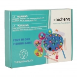 • Diversi modalità di gioco: pesca magnetica di pesciolini e bruchi, trasferimento con pinzetta/bacchette, classificazione dei colori, semplici esercizi con i numeri, allenamento del conteggio sotto forma di gioco da tavolo.