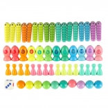 Grazie all’elevato numero di pezzi, il gioco è ideale anche per più bambini contemporaneamente: uno pesca i pesciolini, un altro raccoglie i bruchi e un altro ancora ordina le palline nelle ciotoline in silicone. Materiali sicuri e legno levigato assicurano un gioco confortevole e senza pensieri.