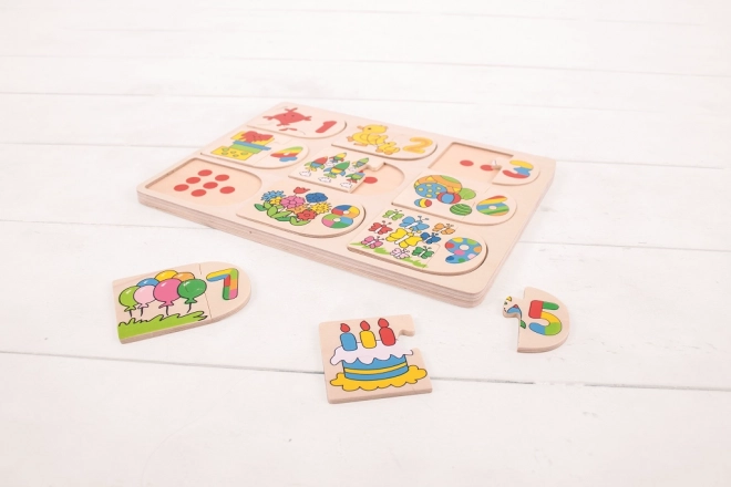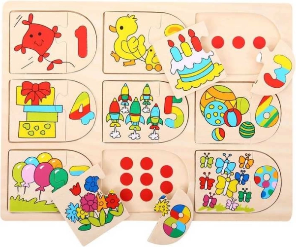 I vostri piccoli curiosi adoreranno sicuramente questo puzzle piccolo, interessante e intelligente. Non solo si divertiranno a ordinare i pezzi negli spazi giusti, ma potranno inserire prima solo le immagini e poi abbinarvi i numeri corretti. Ogni pezzo del puzzle in legno è dimensionato per facilitare il sollevamento e la presa nelle piccole manine dei bambini. I puzzle sono stampati con immagini o colori che favoriscono il processo di apprendimento e aggiungono valore educativo. Un ottimo modo per sviluppare destrezza, riconoscimento delle forme, concentrazione e conteggio fin dalla più tenera età. Caratteristiche principali: realizzato con materiali di alta qualità provenienti da fonti responsabili; conforme alle attuali norme di sicurezza europee.