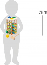 La torre martellante con palline di Small Foot è il giocattolo perfetto per sviluppare le abilità motorie dei bambini. Consiste in una torre dove i bambini martellano 3 sfere colorate attraverso anelli di plastica e osservano come le sfere cadono giù per la scala producendo un suono cliccante.