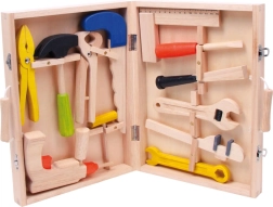 Questa valigia di alta qualità con attrezzi in legno è un fantastico giocattolo per bambini che vogliono diventare piccoli artigiani. Nella valigia troverai un totale di 12 utensili in legno, accuratamente fissati per rimanere al loro posto durante il lavoro e il gioco.