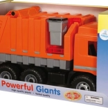 Questo camion dei rifiuti arancione ispirato al modello Mercedes ACTROS offre tanto divertimento d'azione. La struttura a tre assi garantisce stabilità, la plastica di qualità resiste al gioco intenso dei bambini e i due meccanismi di svuotamento (sul retro e sul lato destro) rendono realistico il ribaltamento dei rifiuti. Nella confezione sono inclusi due bidoni, che si possono facilmente agganciare e svuotare.